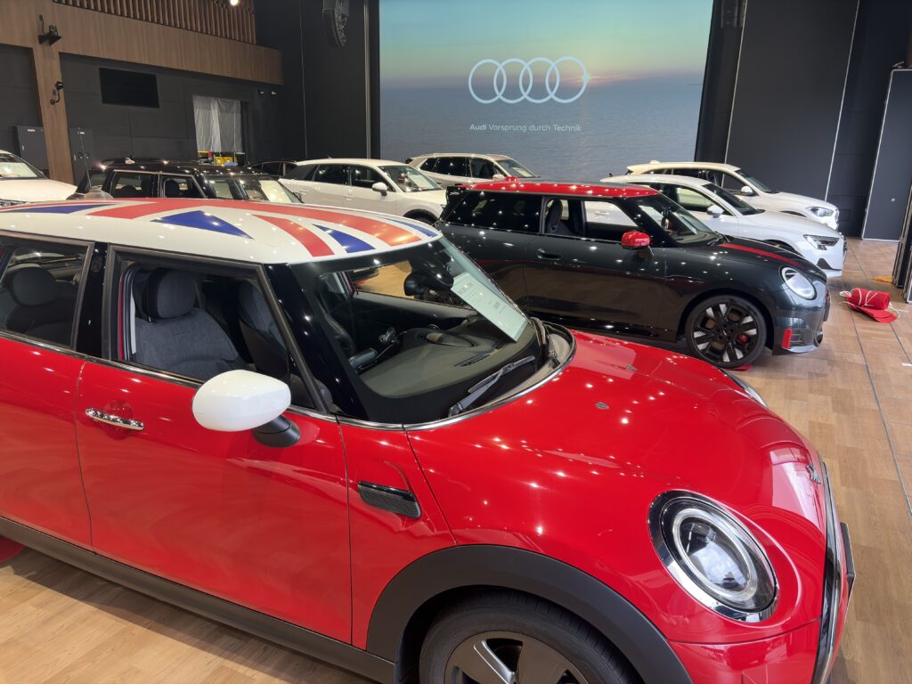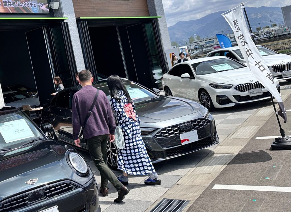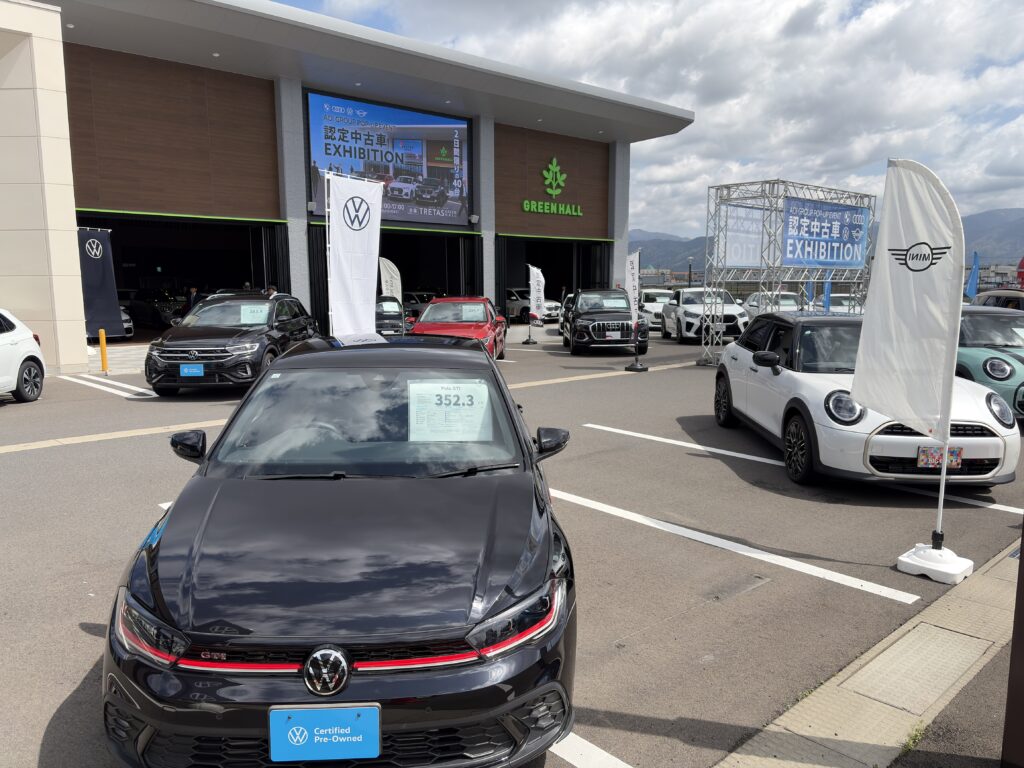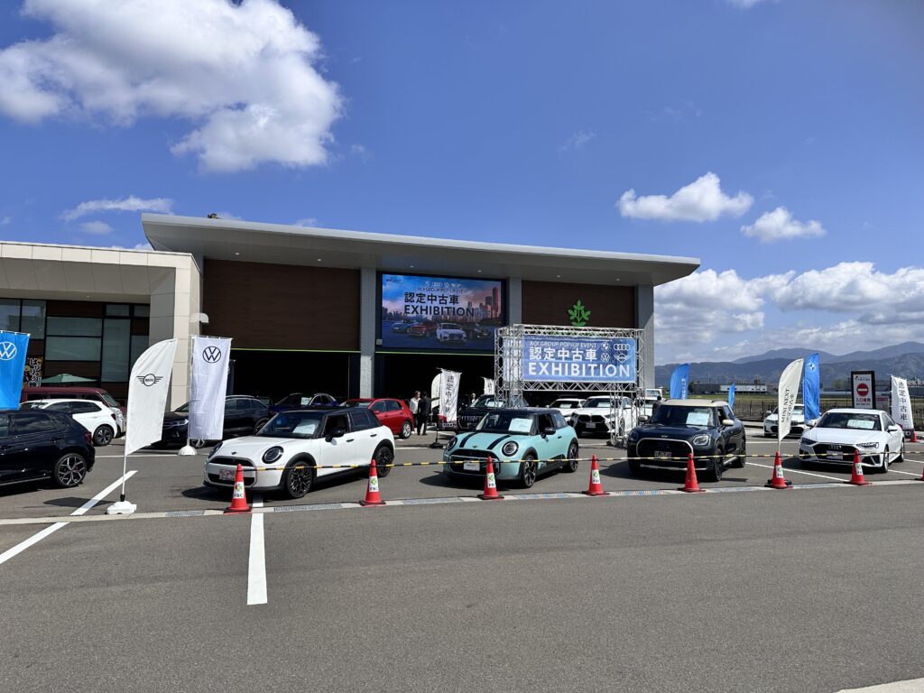 BMW・Audi・MINI・Volkswagen各正規ディーラーが送る信頼と安心の認定中古車40台がグリーンホールに勢ぞろいした2日間のイベント。天候にも恵まれ絶好の中古車展示会場となりました。
