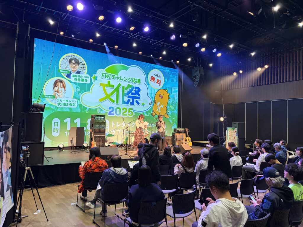 福井で活躍する若者たちのチャレンジや活動を応援する文化祭。ステージ発表、活動展示、ショップ出店などチャレンジ場が盛りだくさんのイベントです。歌・ラップ・お笑いなどオーディションを勝ち抜いた若者たちが多彩なステージを披露しました。
