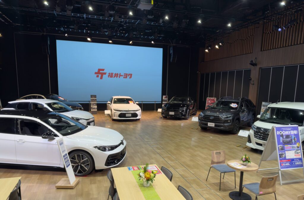 トヨタYOU&iグループ車両展示・販売 福井トヨタを中心としたグループで作るトヨタYOU&iグループが新車を中心にプレミアムフェアと銘打った車両展示販売会を開催。屋外テラスや駐車場の一部も利用してグループが販売するクルマをPRしました。【注目車の走行映像をスクリーン投影】【屋外テ… 400インチスクリーン 音響・照明 その他(テラス・机・椅子・控室など)