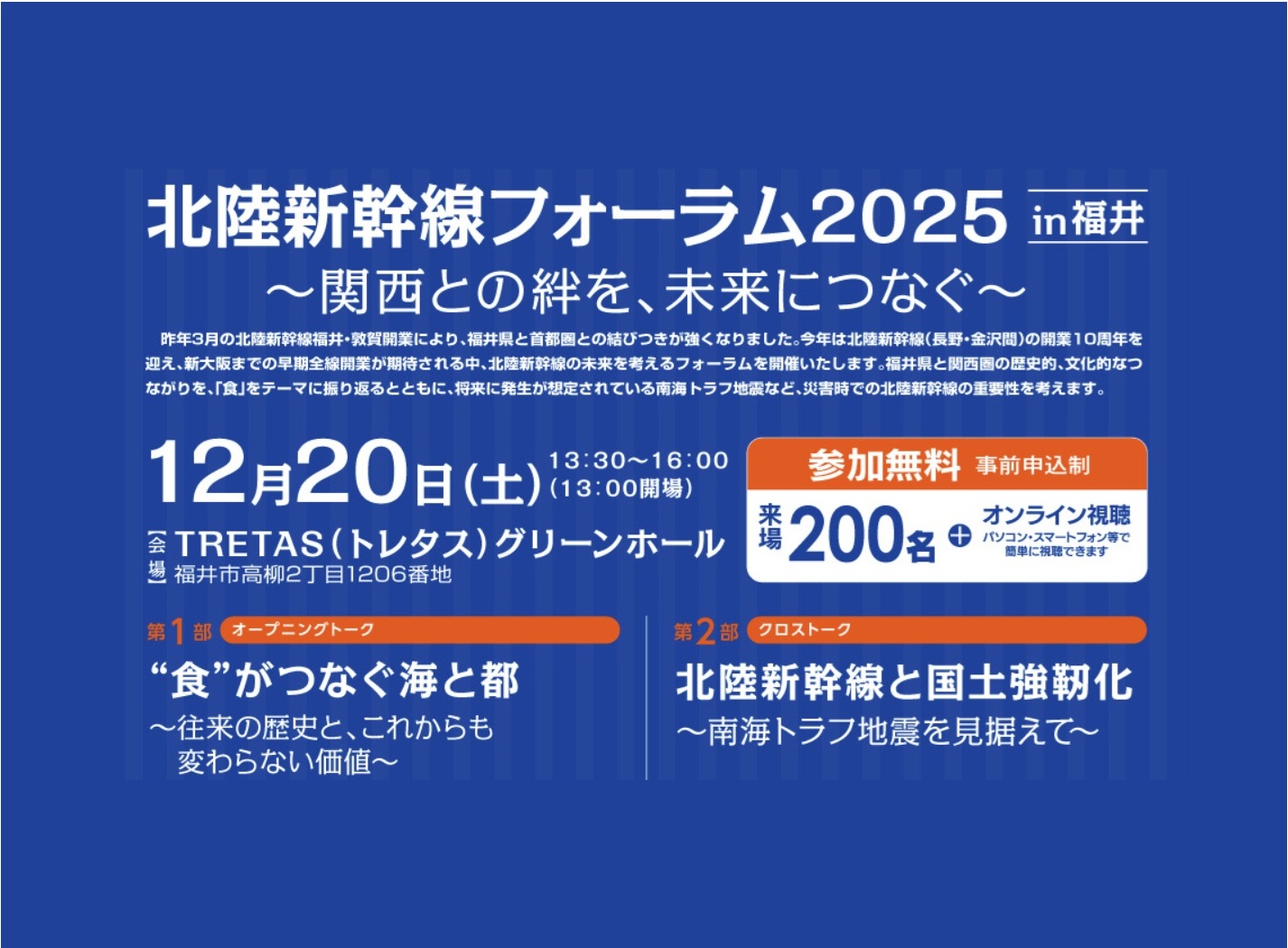 【参加申込み受付中】12/20 北陸新幹線フォーラム2025 in 福井