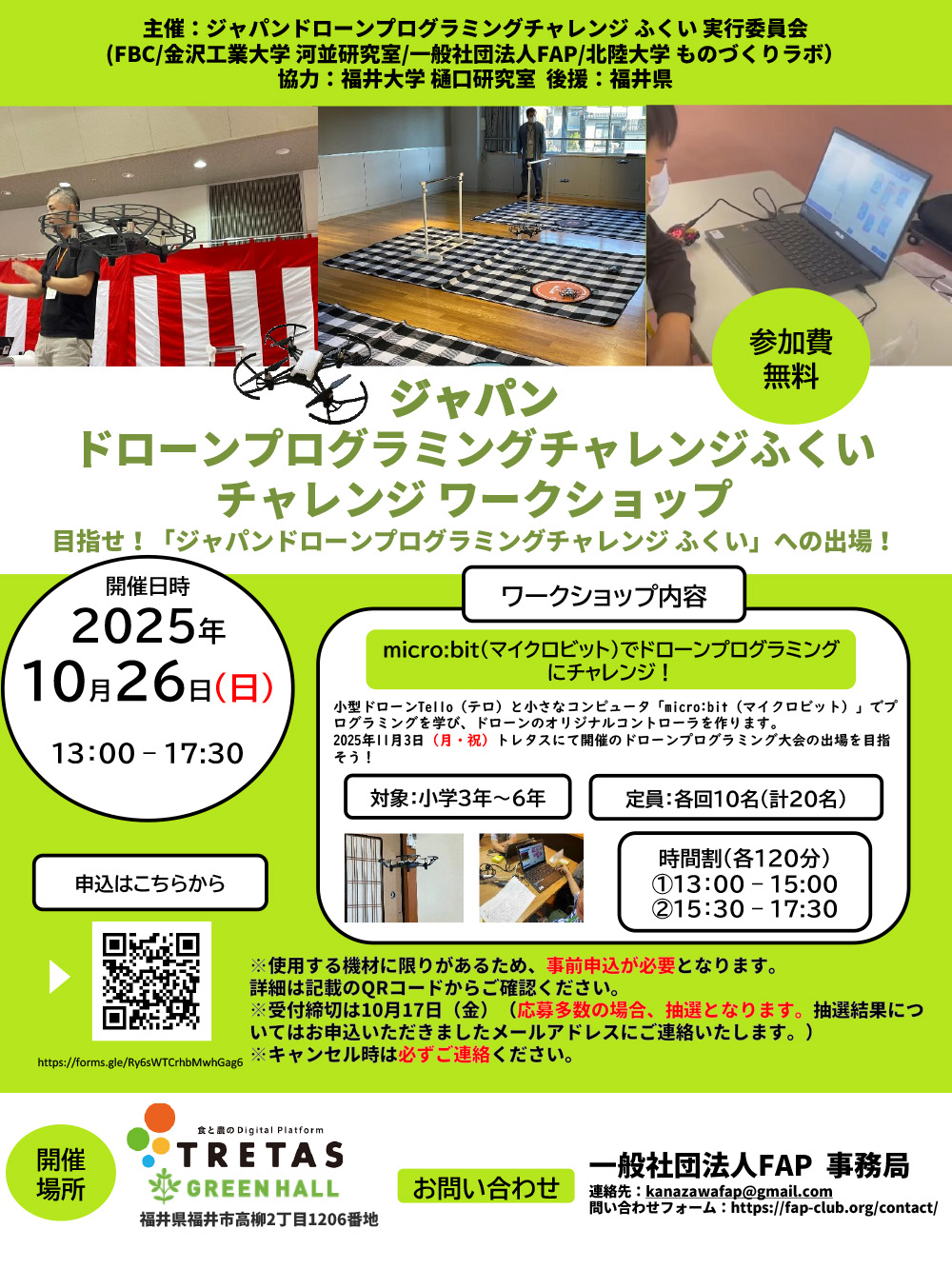 【募集は終了しました】10/26 ジャパンドローンプログラミングチャレンジふくい ワークショップ